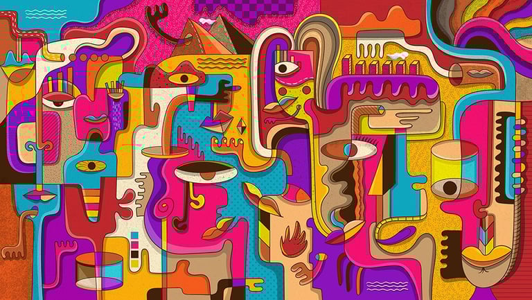 It is an endless visual journey — where every pixel, shape, and color becomes a knot of abstraction and absurdity once recorded or experienced by the artist, whether consciously or not.